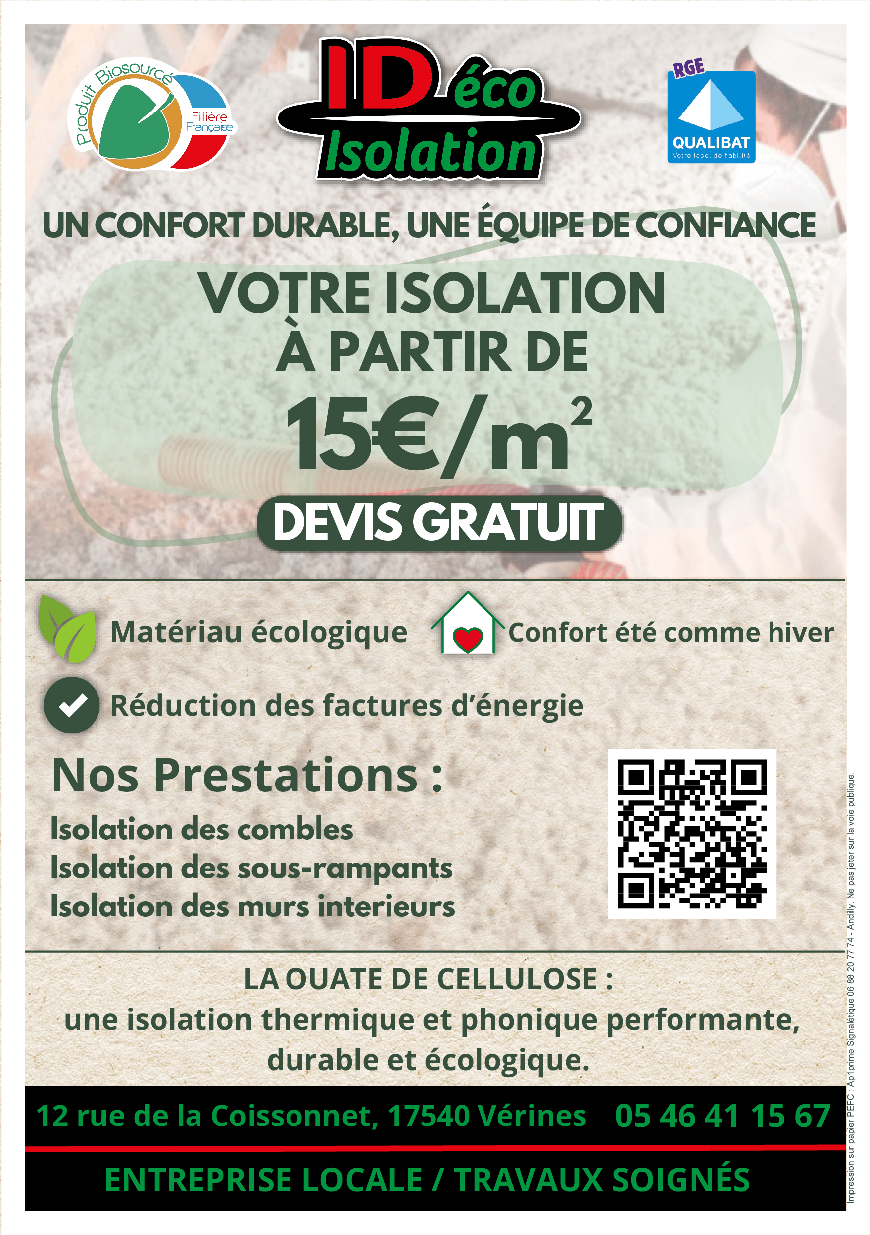 Nos certifications professionnelles reconnues attestent de notre grande compétence technique dans le domaine. Ces labels Qualibat RGE (Reconnu Garant de l'Environnement) et Éco-artisan permettent à ID ECO de vous ouvrir l'accès aux aides financières disponibles pour vos travaux d'isolation thermique.